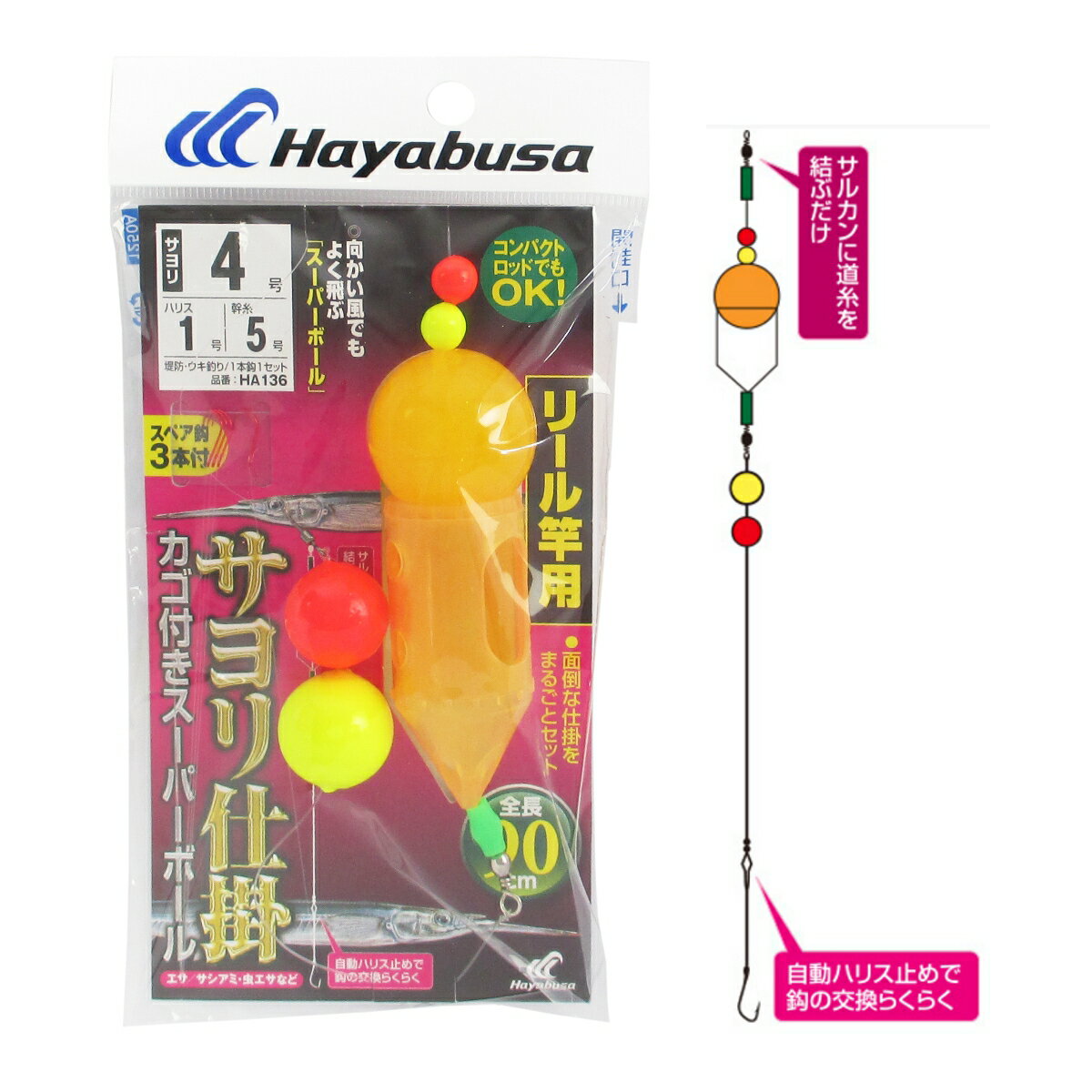 サヨリ専用のものが売っているから、それを2個買いましょう。思いっきり投げるので、たま〜に投げるのミスってブチッと切れちゃうから…。上手なら1個でOK!