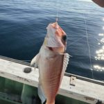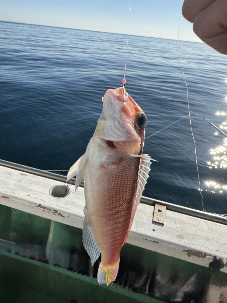 《実釣コメント》:夏場にトラギスやフグが多くオキアミが瞬殺される状況でサバ短冊に変えたところ、餌持ちが格段に良くなり、数回誘い直しているうちにズシッと重いアタリがありました。アマダイのサイズは控えめでしたが、外道を避けつつ本命に辿り着けた感覚が印象的です。